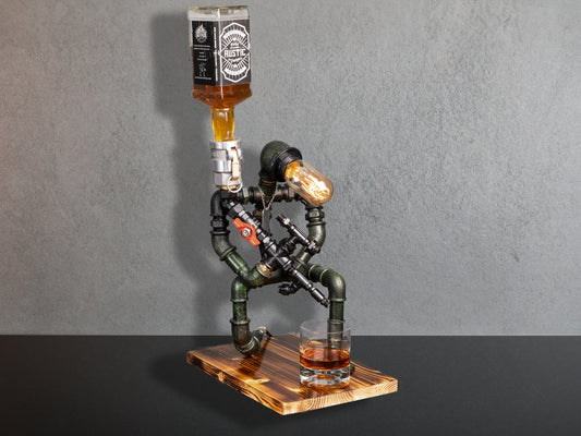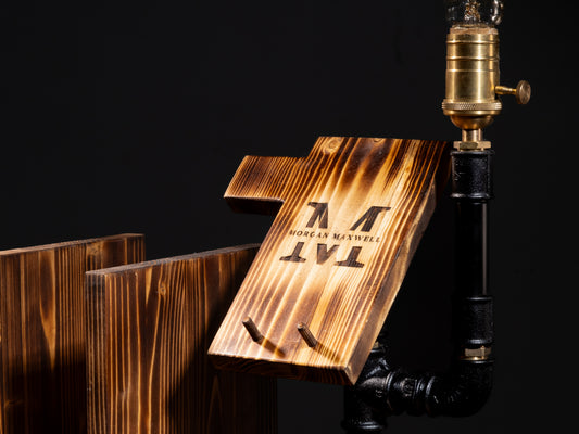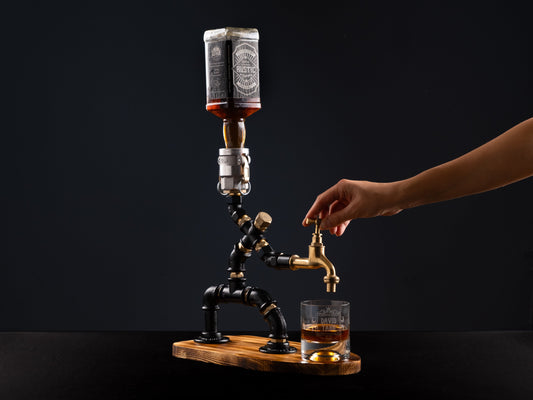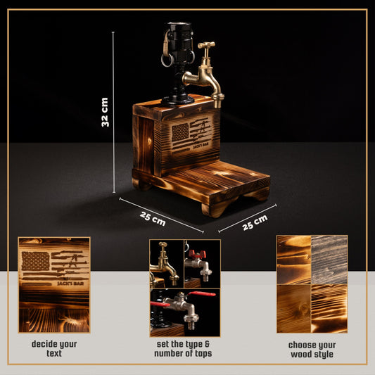 Dual-Tap Liquor Dispenser with LED Name Plate – Handmade Rustic (Personalized)