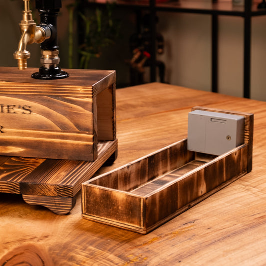 Dual-Tap Locked Liquor Dispenser with Hidden Drawer – Handmade Rustic Bar Unit (Card-Lock)